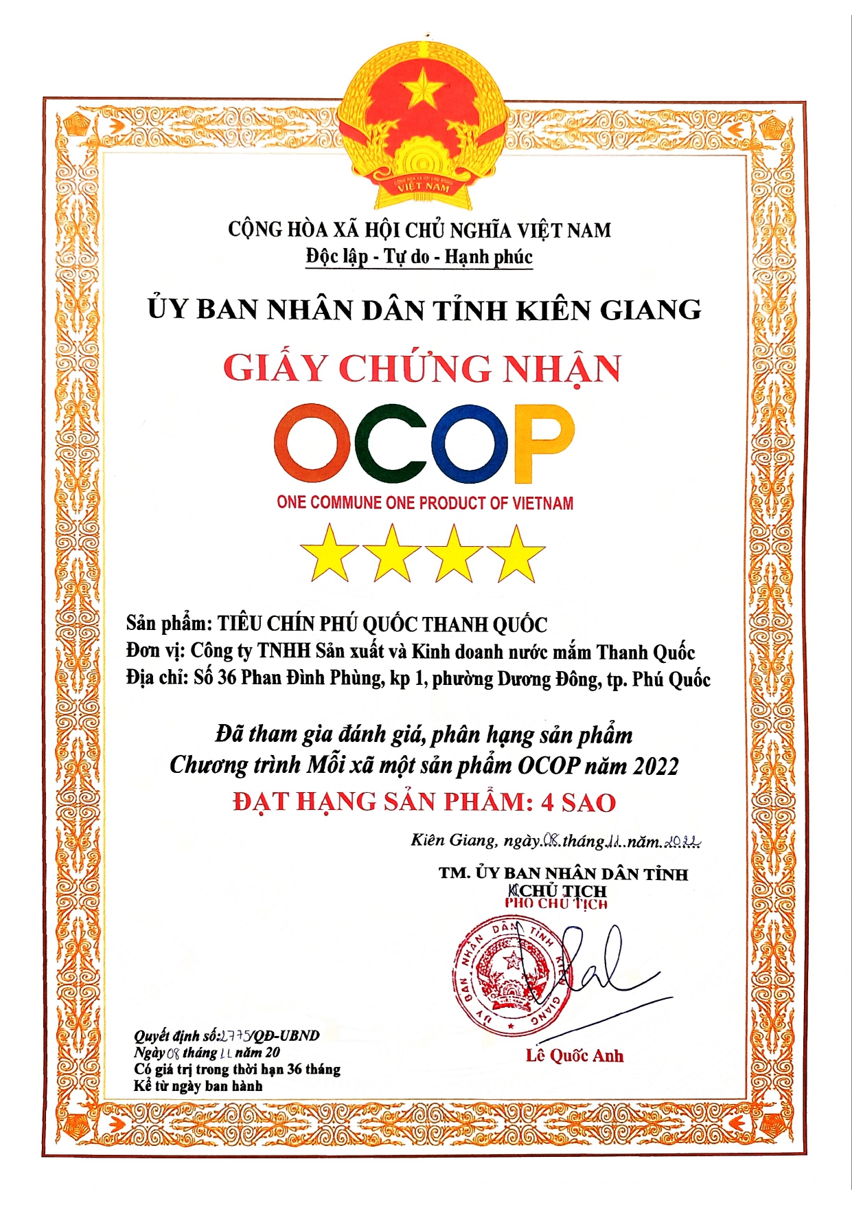 Công ty TNHH Sản Xuất Kinh Doanh Nước Mắm Thanh Quốc tự hào là một trong những công ty đầu tiên sản xuất nước mắm Phúc Quốc của Việt Nam có bề dày lịch sử hơn 100 năm với 4 thế hệ kế thừa truyền thống